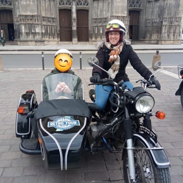 - découverte de Tours d'une façon insolite : en side-car, une super chouette expérience avec "Retro Tour Châteaux de la Loire" et leur accueil super chaleureux 😊(rassurez vous je fais juste semblant de conduire pour la photo 😉)