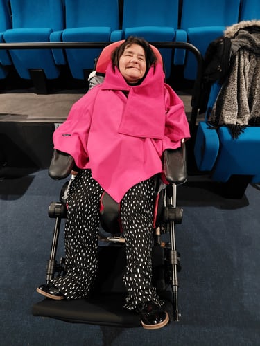 En arrivant à la salle c'est l'occasion pour Violette de retrouver des personnes qu'elle connait et aussi de regarder avec plaisir les photos des sorties auxquelles elle a déjà participé. Ces photos sont accrochées sur des panneaux et font ressortir plein de jolis souvenirs.