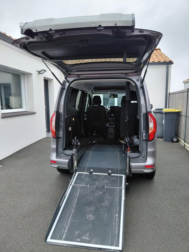 Le véhicule était parfaitement adapté pour le transport d'un fauteuil roulant grâce à sa rampe dépliable, ses 4 attaches pour le fauteuil roulant ainsi que la ceinture de sécurité 3 points.